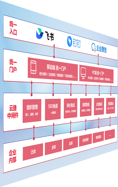 对协作平台提供支持服务,,,,支持企业应用与协作平台对接,,,包含组织同步、、消息集成、、、待办集成等。。。支持目前主流的协作平台:钉钉、、、、企微和飞书。。。